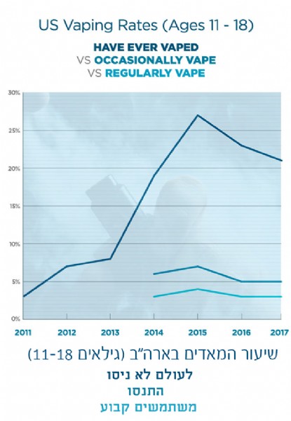 בארה"ב ישנו מחקר National Youth Tobacco Survey שעוקב אחרי אותם נתונים בסיסיים, וזה מתבצע מדי שנה בחטיבות הביניים ובבתי הספר התיכוניים.